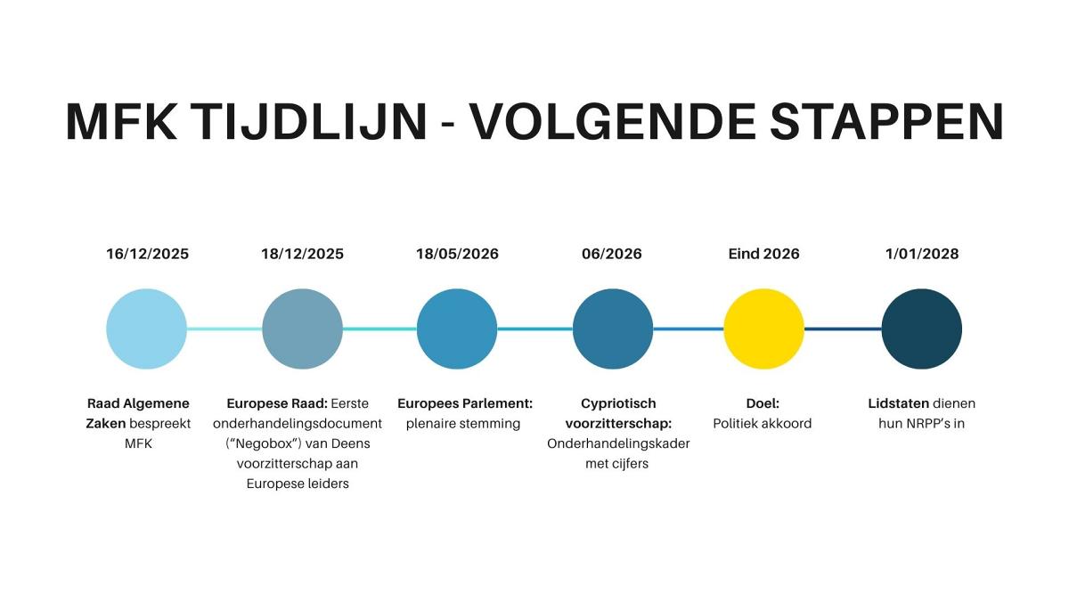 De algemene ambitie blijft: een akkoord tegen eind 2026, zodat het nieuwe MFK 2028–2034 tijdig kan starten.