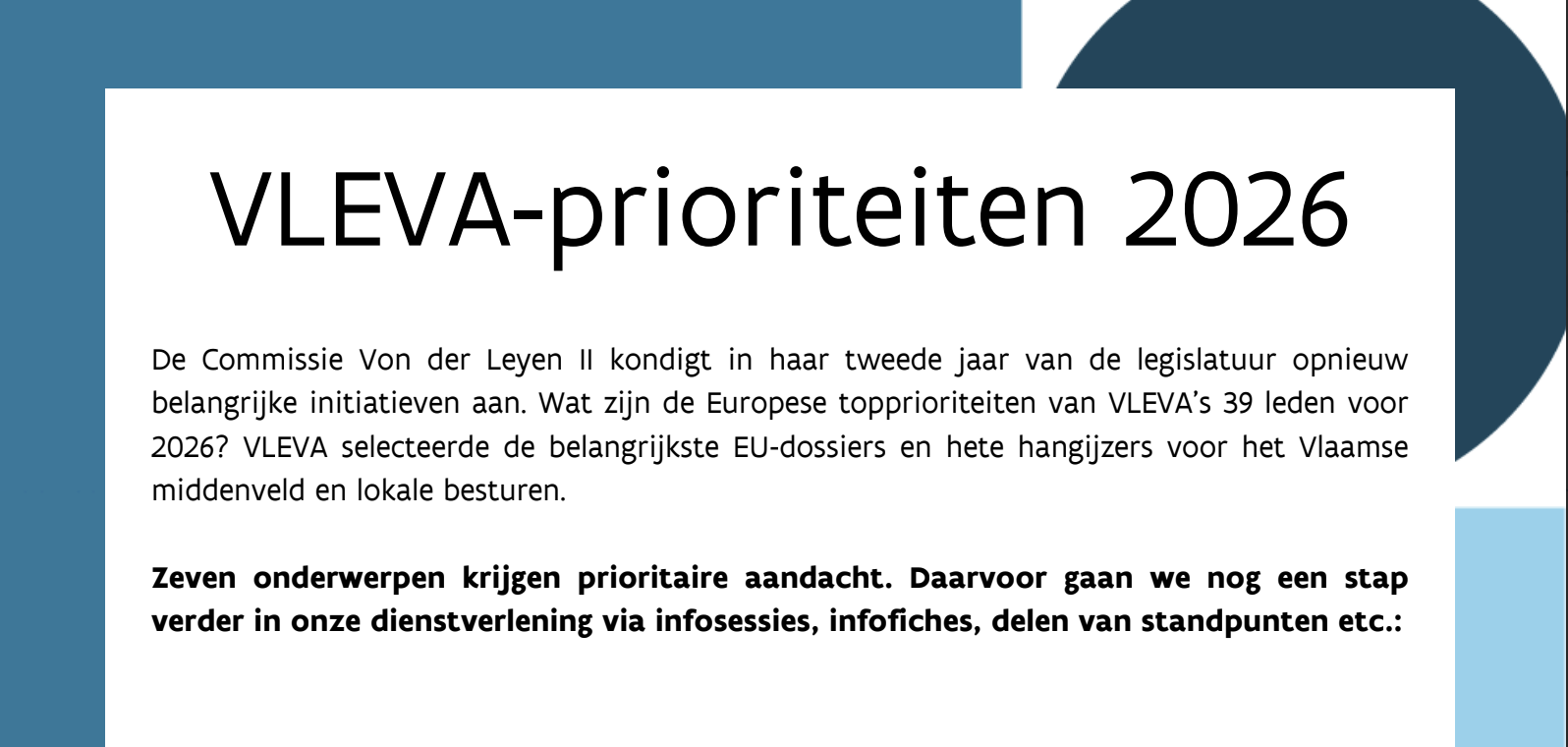 Wat zijn de Europese topprioriteiten van VLEVA’s 39 leden voor 2026?